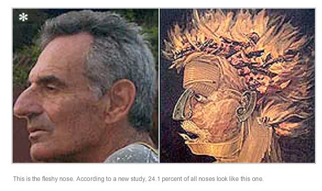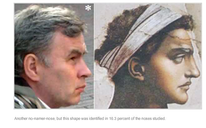 Personne n’avait donc pris la peine de s’y pencher bien sérieusement, jusqu’à ce qu’un certain Abraham Tamir ne vienne mettre son nez dans cette affaire, et décide de classifier ceux des autres. Il publie donc en mai 2011 une étude décrivant par le menu les types de nez et leur fréquence statistique. Ses observations ont été effectuées sur un peu moins de 2000 œuvres picturales ou photographiques, représentant des hommes et des femmes originaires des Pays-Bas, de Belgique, et de France. Une étude prenant en compte les spécificités anatomiques des peuples africains, sud-américains et asiatiques permettrait d’augmenter considérablement le nombre de données et d’établir un classement plus complet.