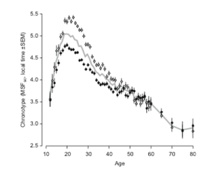 Une étude européenne a montré que le chronotype qui régle les habitudes horaires de sommeil change avec l’âge : les enfants et les personnes âgées ont tendance a avoir un sommeil avancé tôt dans la soirée avec un réveil précoce, alors que les adolescents et les adultes jeunes se décalent franchement dans la nuit et se réveillent tard le matin. Donc chacun réagira différemment au changement d’heure selon son chronotype.